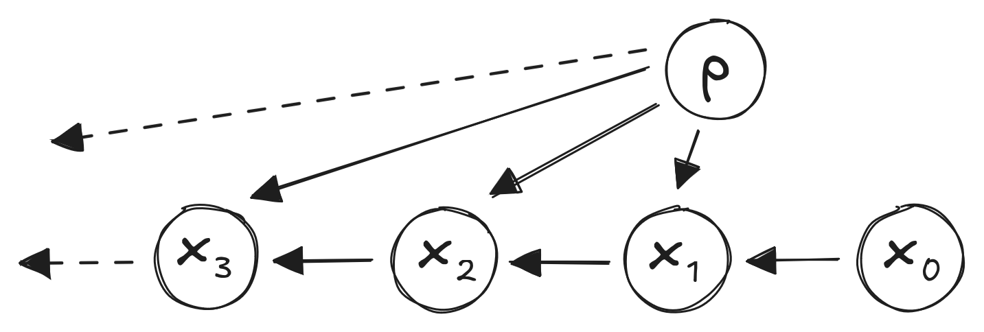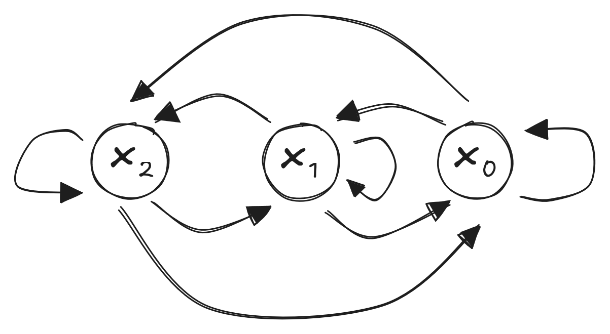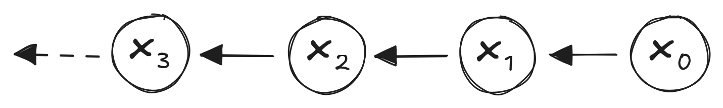 \(P(X_{t} | X_{t-1},X_{t-2},...,X_{0}) = P(X_{t} | X_{t-1})\)