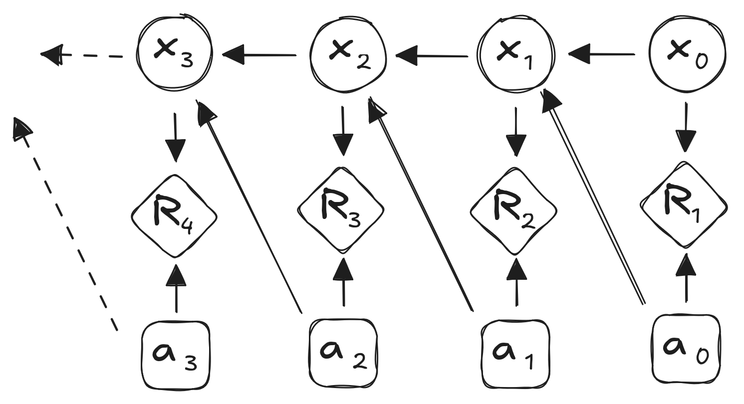 Reward for being in state \(x_0 = \begin{bmatrix}0 & 1 & 0\end{bmatrix}\):