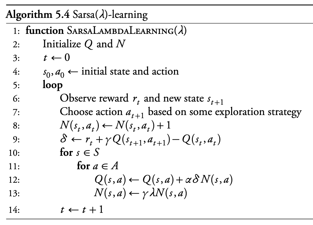 - \(N(s,a) \gets \gamma \lambda N(s,a)\)